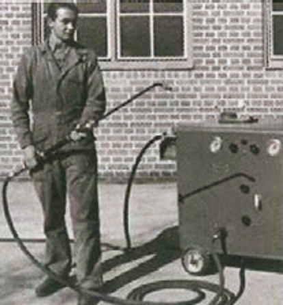 温水高圧洗浄機の誕生。ヨーロッパで最初の温水高圧洗浄機を開発し特許を取得。