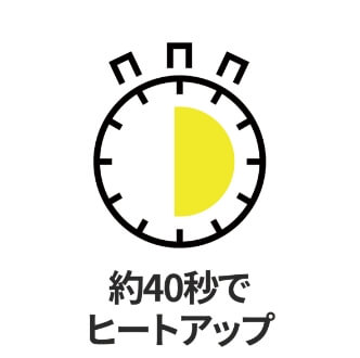 ヒートアップタイム 約40秒(水温20℃の場合) スチーム連続噴射時間 給水により連続使用