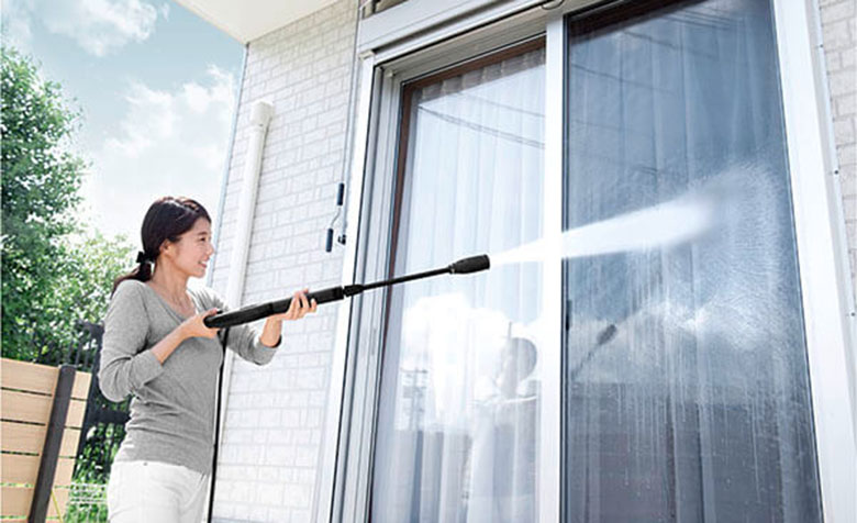 「高圧洗浄はなんとなく音が心配」という不安をくつがえす静音設計で、ご近所に気兼ねなく使用できます。
