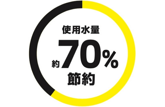 しかも、水道ホースでの洗浄に比べて、水の使用量は約70%も節約。